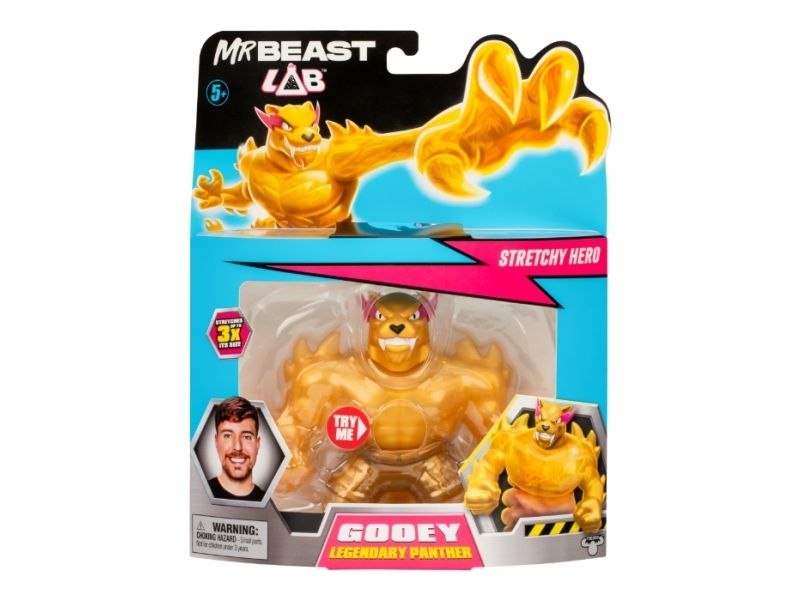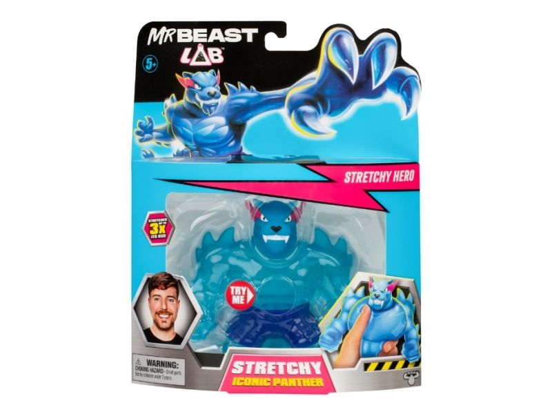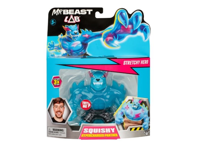 Den ikoniske MrBeast panter er blevet forvandlet til aldrig før sete squishy, stretchy heltei den kendte Goo Jit Zu kvalitet. Disse 11 cm figurer har unikke fyldninger, der venter på at blive afsløret, når du strækker og klemmer dem. De Stretchy Heroes kan også strækkes op til tre gange deres størrelse, så du kan lave et KÆMPE ANGREB. Start dit eventyr med de NYE MrBeast Lab - Stretchy Heroes, hvor du kan vælge mellem flere forskellige pantere.
