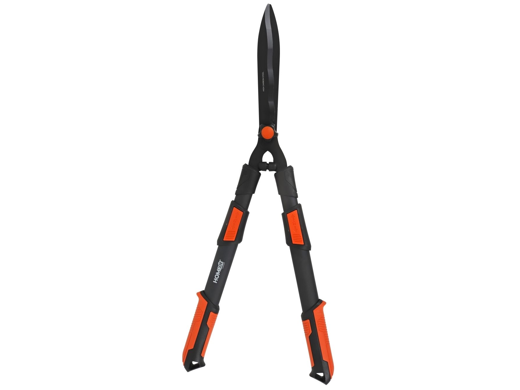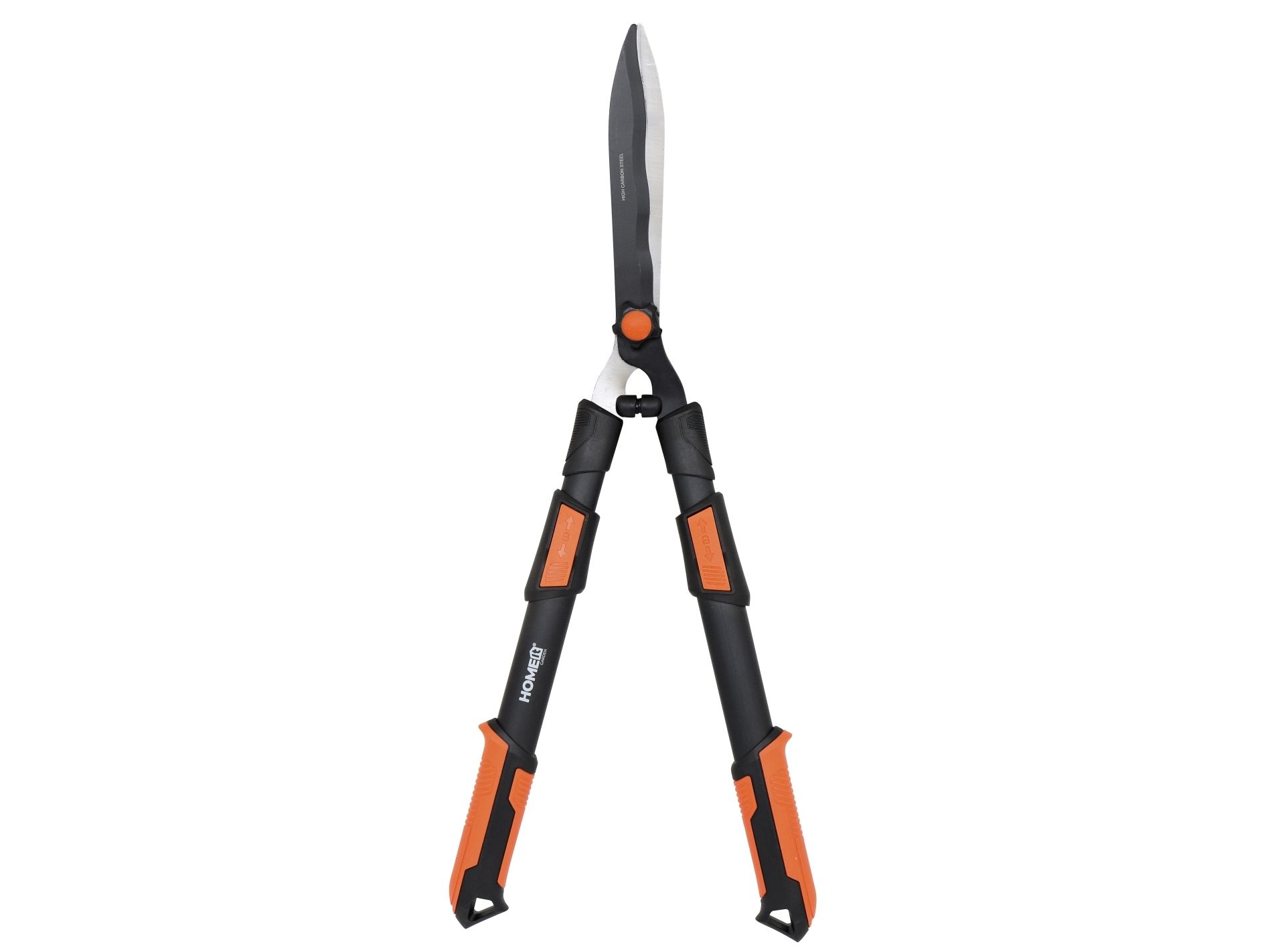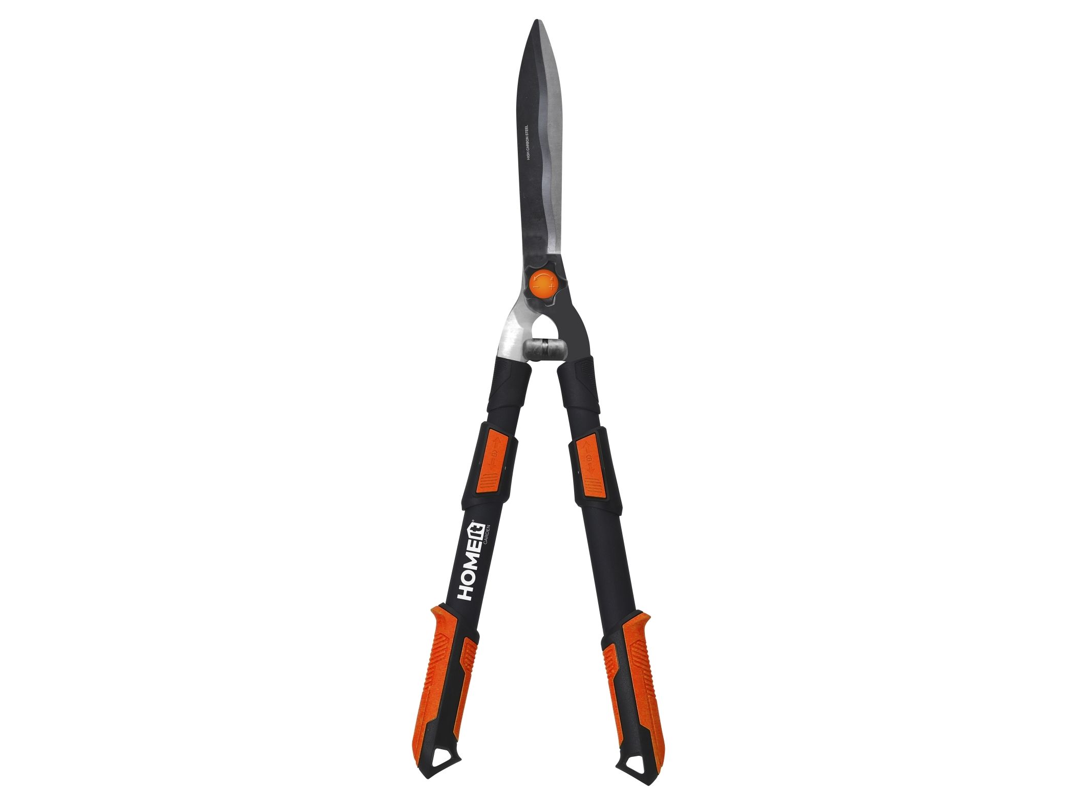 HOME It® Garden hækkesaks med bølgeskær og teleskopskaft, så du kan nå længere, når du klipper hæk. Hækkeklipperen øverste blad er udført i teflonbelagt karbonstål, mens det nederste blad er forkromet, så det er ekstra holdbart og holder sig skarpere længere. Bølgeskæret kan klippe grene med en diameter på op til 6 mm. Grebet med nonslip-belægning sørger for, at du har fuld kontrol over hækkesaksen under brug, og teleskopfunktionen på skaftet giver dig øget rækkevidde til højere og tykkere hække. Mål: 700×200×50 mm Teleskopskaft: 250 mm Vægt: 1400 g Grentykkelse: maks. 6 mm Farve: orange/sort
