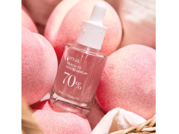 Peach 70% Niacinamide Serum er beriget med en høj koncentration af niacinamid (også kendt som vitamin B3), der er kendt for sine utallige fordele for huden. Dette serum hjælper blandt andet med at reducere synligheden af hyperpigmentering, ujævn hudtone og fine linjer, samtidig med at det opretholder hudens naturlige fugtbalance.