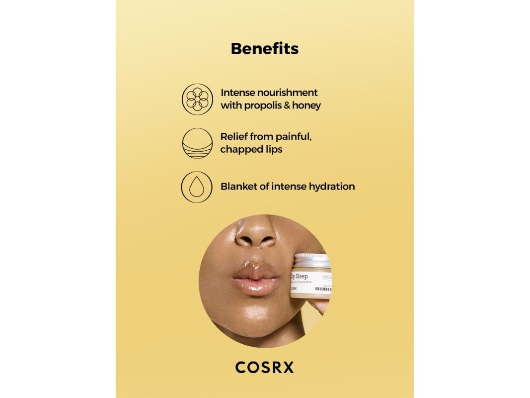 Lip Sleep Propolis Lip Sleeping Mask er en fugtgivende sovemaske designet til at blødgøre og fugte læberne. Med propolis og honning som hovedingredienser sikrer denne maske, at dine læber føles bløde og næret.