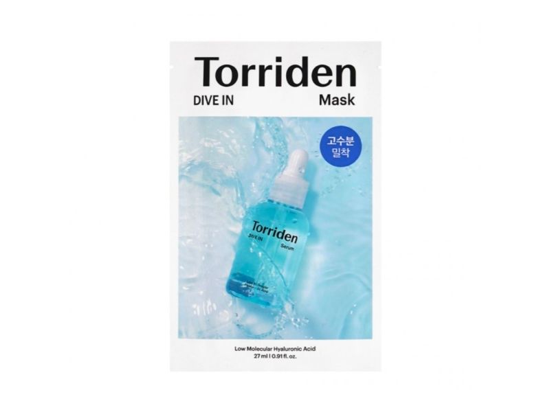 DIVE-IN Low Molecule Hyaluronic Acid Mask indeholder lav-molekylær hyaluronsyre, der sørger for at binde fugt til huden, og behandler tør og dehydreret hud.