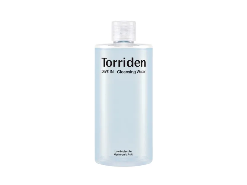 Torriden DIVE-IN Cleansing Water er en skånsom og effektiv rensevand designet til at fjerne solcreme, makeup og daglig snavs, perfekt for dem, der søger en mild renseløsning.