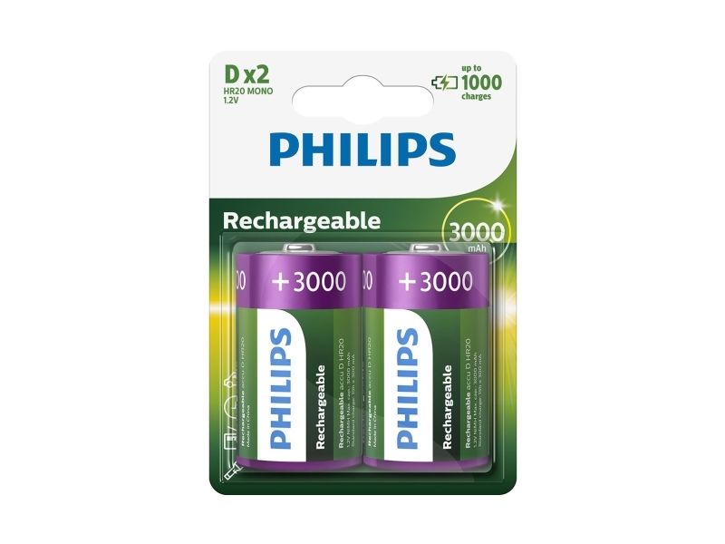 Philips Rechargeables Batteri R20B2A300/10, Oppladbart batteri, D, Nikkelmetallhydrid (NiMH), 1,2 V, 3000 mAh, Cd (kadmium), Hg (kvikksølv)