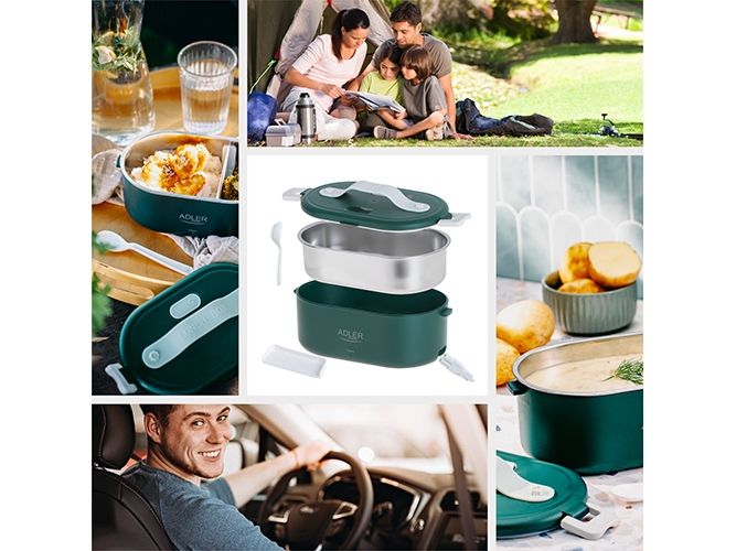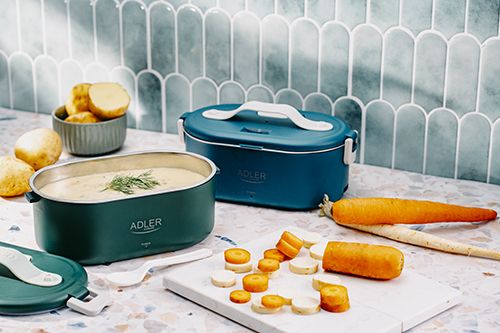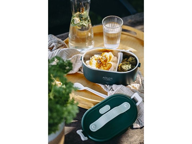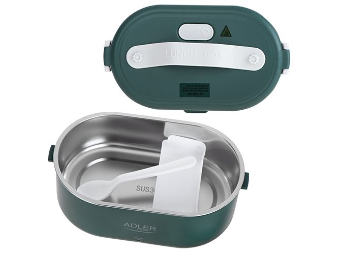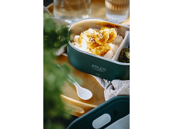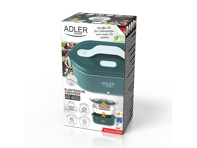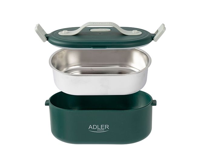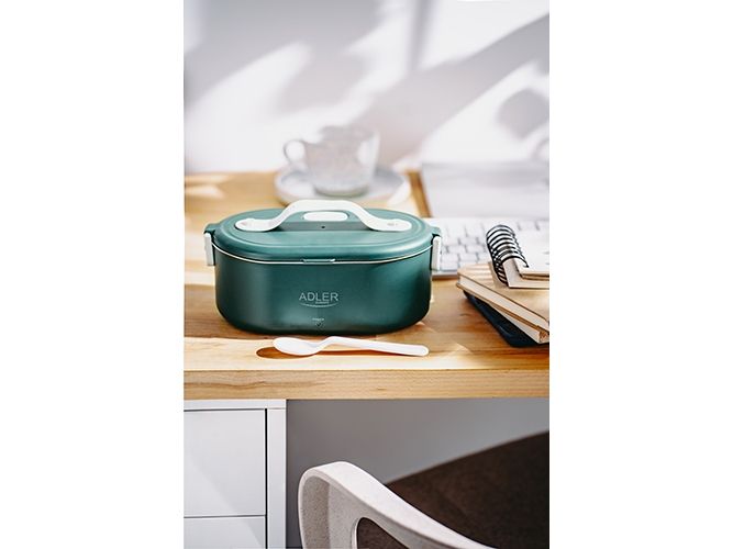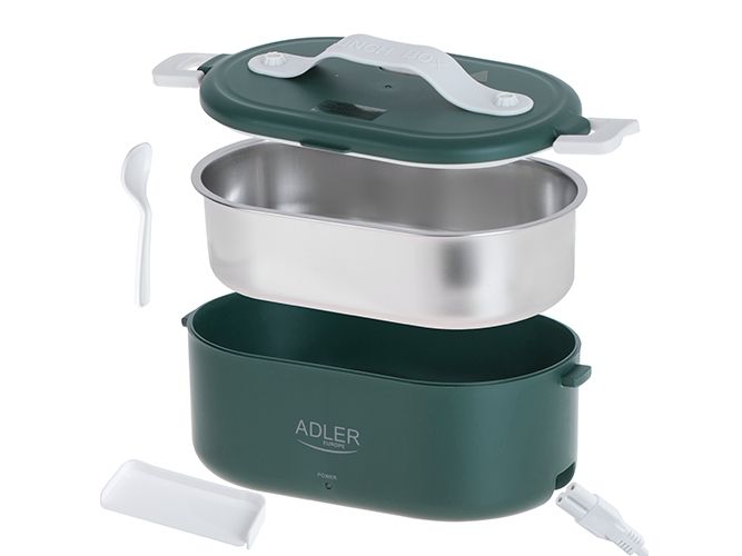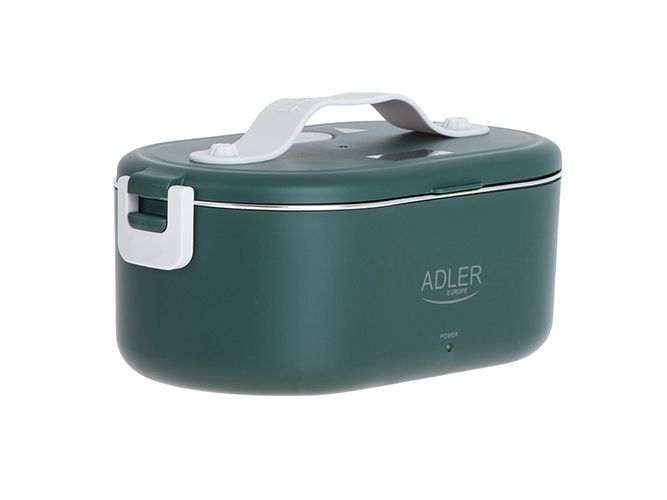The heated food container is an innovative solution for people who value comfort, healthy meals and warm food on the go, at work or at school. The electric food warmer allows you to store and heat food in one device, eliminating the need to use several different containers and devices. The container has enough space to hold a wholesome meal, soup, main course or snacks. You can heat different types of food in it, such as soups, stews, pasta, rice and much more. It is made of the highest quality materials, the Adler 4505 container is durable and resistant to mechanical damage. Solid closures and seals ensure safe storage of food, and the ergonomic handle makes it easy to carry. The container is made of materials free from harmful substances, which makes it safe for health and does not adversely affect the taste of stored food. The removable container insert makes it easy to clean both by hand and in the dishwasher, saving you time. Thanks to the Adler 4505, you no longer have to give up a hot meal while working. Enjoy delicious, warm dishes anytime and anywhere thanks to this unique product that combines practicality, functionality and innovation.Adler AD 4505G. Capacity: 0.8 L, Product colour: Blue, Green, White, Shape: Oval. Power source type: AC, Power: 55 W, Input voltage: 220 - 240 V. Width: 135 mm, Depth: 100 mm, Height: 220 mm. Package weight: 710 g, Package type: Box