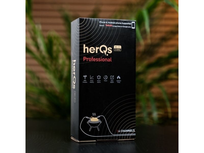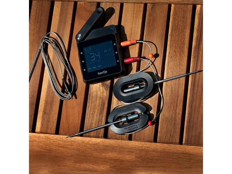 Experience the perfect fusion of precision and convenience with the HerQs Professional. Designed for both gastronomes and grill masters this intelligent cooking thermometer is your partner in ensuring every meal is cooked to perfection. With its advanced capabilities you can step away from the grill or oven and engage with guests or relax knowing that your dish is in the best hands. Exceptional Monitoring of up to 6 Probes Simultaneously Precise Cooking Guidance for temperatures up to 300 ? Wireless Connectivity with both Wi-Fi and Bluetooth Rechargeable 2400 mAh for Endless Use Robust Design with IP65 FDA and LFGB certification Exceptional Multi-Probe Monitoring Why settle for guesswork when you can have the confidence that comes with precision? HerQs Professional features 6 probe inputs allowing you to track the temperature of up to 6 dishes simultaneously. Whether preparing a full-course meal or hosting a barbecue ensure every item is accurately cooked to its ideal temperature. Precise Cooking Guidance Take your culinary skills to new heights with the HerQs Professional's two types of professional-grade stainless steel probes. Capable of withstanding temperatures from 0-300? (32-572?) these probes provide tight precision within ±1% at lower temperatures and ±2% at higher temperatures. Achieve the exact doneness you desire from a rare steak to a perfectly baked loaf. Unlimited Wireless Connectivity Stay connected to your cooking wherever you are with HerQs Professional's seamless Wi-Fi and Bluetooth features. Monitor your dishes from any distance whether in a different room or across the park as the HerQs app keeps you updated in real-time. With support for iOS and Android devices you're always within reach of the perfect cooking experience. Rechargeable for Endless Use Say goodbye to the hassle of frequent battery replacements. With a powerful 2400mAh lithium rechargeable battery the HerQs Professional offers long-lasting performance. Conveniently recharge with the included USB-C cable and enjoy the freedom to cook without limits. Robust and Water-Resistant Design Engineered to stand up to the rigors of the kitchen the HerQs Professional boasts a sturdy build with an IP65 waterproof rating. Whether you're facing a splash or a storm your cooking companion remains unphased ensuring reliability and durability in all your culinary ventures. Package includes: 1x HerQs Professional 2x Stainless steel food probes 1x Ambient Probe for ambient grill temperature 1x User Manual 1x USB-C cable Product specifications: Temperature Measurement Range for Probes: 0-300? / 32-572? Temperature Precision: 0-99 ? ±1% / 100-300 ? ±2% Battery: 2400mAh Lithium rechargeable battery Digital Display: Backlit LCD screen Waterproof Rating: IP65 Wireless Connectivity Range: Unlimited range through WiFi Certifications: FDA LFGB Mobile App Compatibility: Works with iOS (version 11.0 or later) and Android (version 5.0 or later) devices