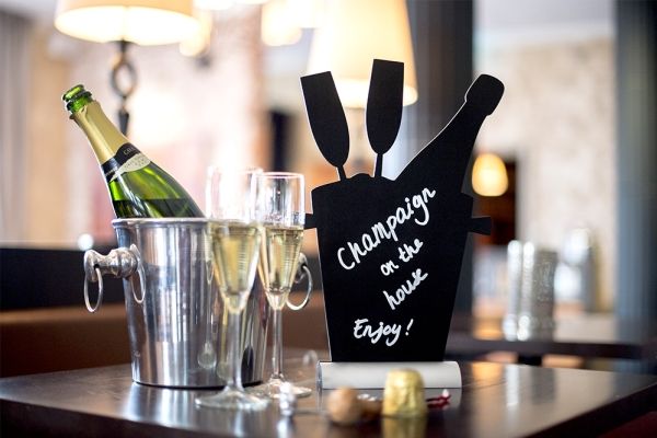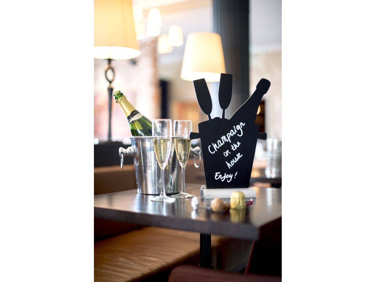 Securit® silhuet CHAMPAGNE bordskilt med alufod