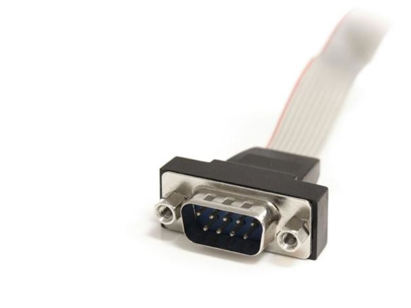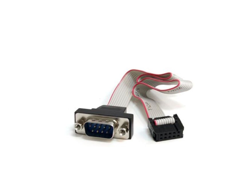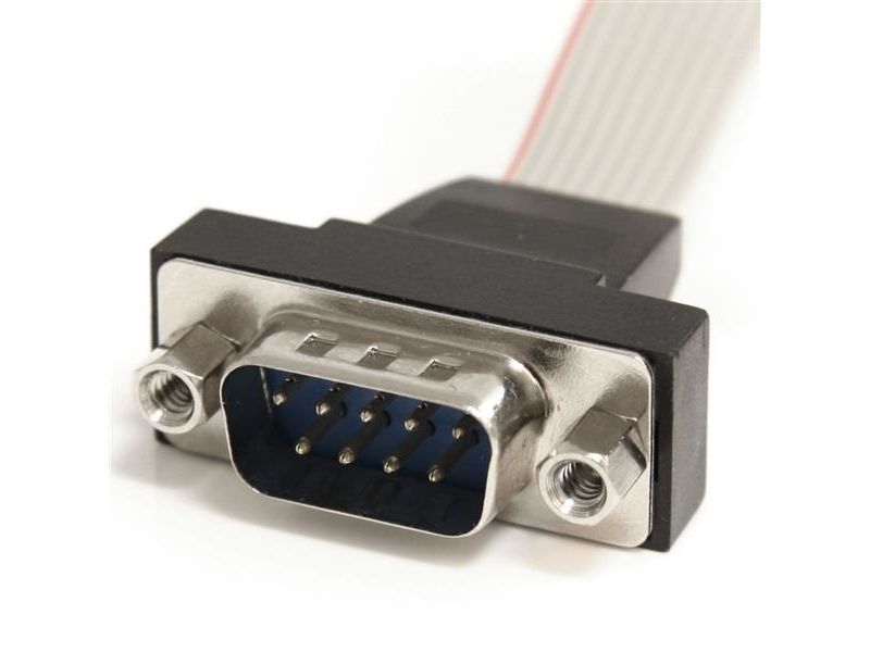 The PNL9M16 16-inch IDC Serial to Panel Mount Serial Cable, features a 10-pin (IDC) motherboard header connection on one end and a panel mount DB9 male connector port on the other - a simple answer for adding a DB9 (RS232) serial port to any computer system which has an RS232 serial panel mount receptacle.
