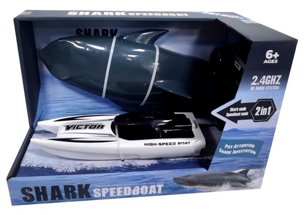 Fjernstyret 2-i-1 Speedbåd og Haj 2.4G, Hvid