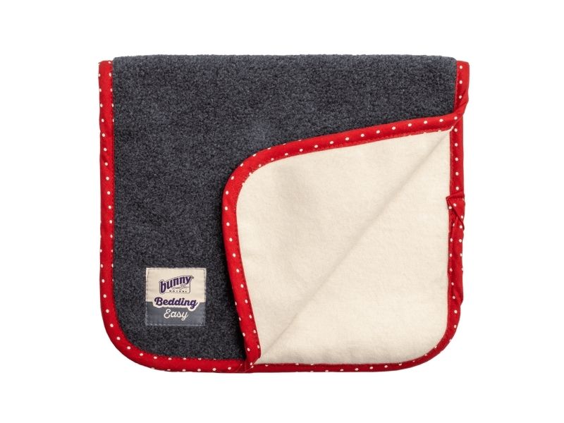 1 stk. (Farve: koksgrå og med sød rød kant). Hvad er molton-stof i Bunny Nature tæppet til dit kæledyr? *Molton-tekstil er fremstillet af 100% bomuld og har en tæt vævning, der giver en række fordele; såsom sved og urin-absorberende lagen i sengen, lydabsorption, brandhæmning og i dette tilfælde et praktisk tæppe til ejere af kaniner, marsvin og andre gnavere. På grund af vævningen har både væske og lyd sværere ved at trænge igennem.