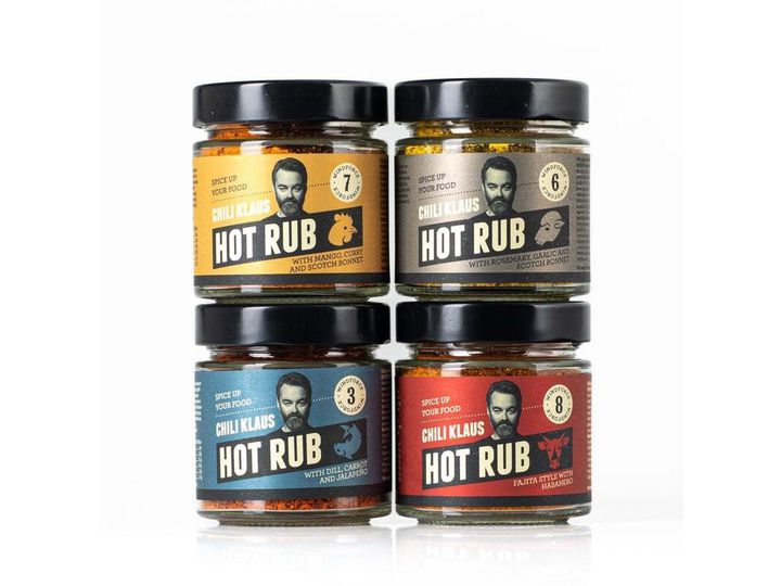 • DILL, CARROT & JALAPEÑO - Vindstyrke 3 • ROSEMARY, GARLIC & SCOTCH BONNET - Vindstyrke 6 • MANGO, CURRY & SCOTCH BONNET - Vindstyrke 7 • FAJITA STYLE WITH HABANERO - Vindstyrke 8 |