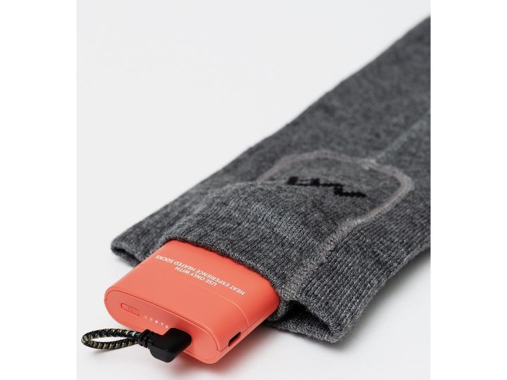 De oppladbare 5000 mAh-batteriene er plassert i en separat lomme øverst på sokken og holder deg varm i opptil 8 timer (under optimale forhold). Velg mellom tre varmenivåer med fjernkontrollen eller ved å trykke på knappen på batteriet. Batteriindikatoren gir deg full oversikt over gjenværende varmetid. Lad med USB-C mens du er på farten, og du er klar for nye eventyr!