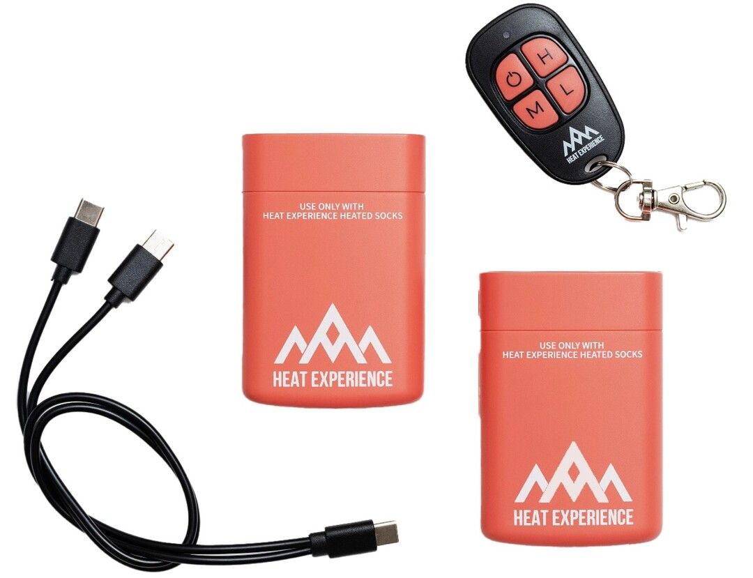 Ekstra batterier og fjernkontroll for HeatX Heated Everyday Socks V2. De buede batteriene følger benets form for bedre komfort og passform under bruk. USB-C-tilkoblingen gjør det enkelt å lade batteriene også når du er på farten. Fjernkontrollen er liten og leveres med nøkkelring for sikker oppbevaring og enkel bruk.