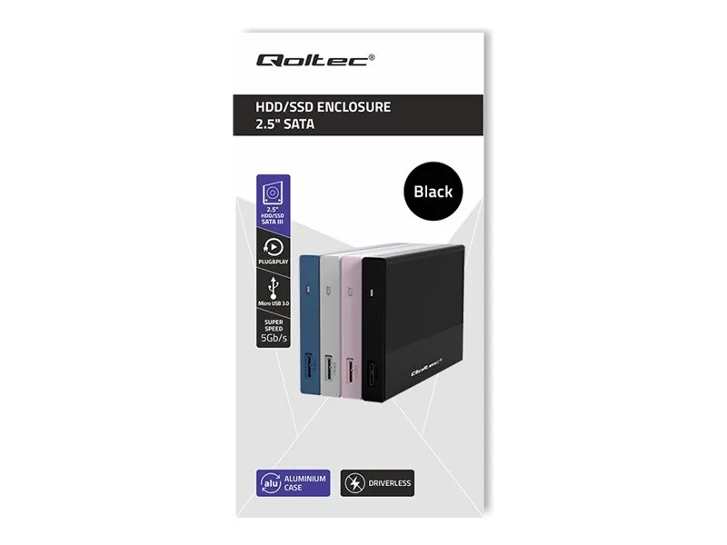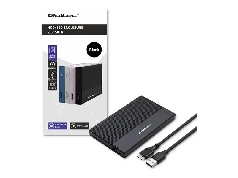 Qoltec - Drevkabinett - 2.5" - SATA 6Gb/s - USB 3.0 - svart