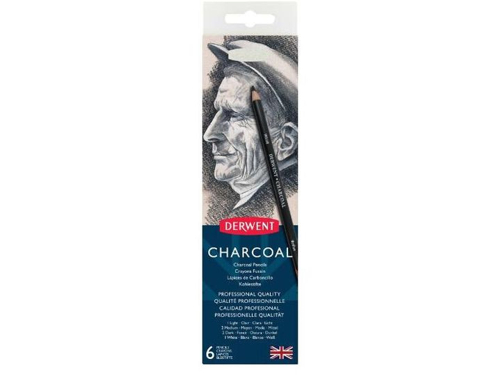 Derwent Charcoal - 6stk tin - Charcoal pencils light, medium, dark, white