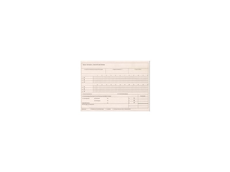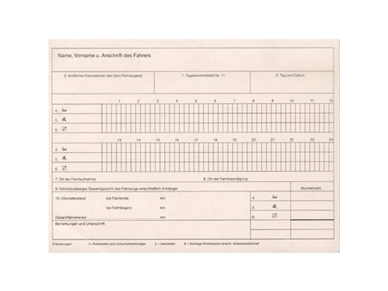 Kontrol bog iht. § 1. paragraf 6 (FPersV). Efter kørsel personal forordning skal hver fører et erhvervsmæssigt anvendte køretøj med mere end 2,8 tons op til maksimalt 3,5 tons højeste mål inklusive anhænger optagelser via sin styre-, arbejds- og hviletider. Med kontrol bog vises de lovmæssige krav. Vist er enkeltsidet glans folier kacheret, slidstærke og beskytter mod mekaniske påvirkninger, fingeraftryk eller lignende.