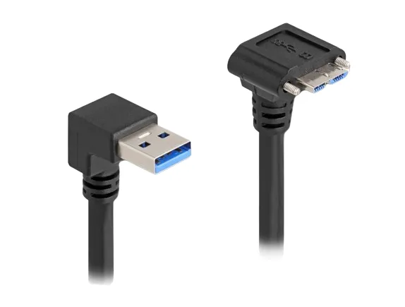 Delock USB 5 Gbps-kabel USB Type-A hann 90° vinklet nedover til USB Micro-B hann med skrueavstand 18 mm 90°