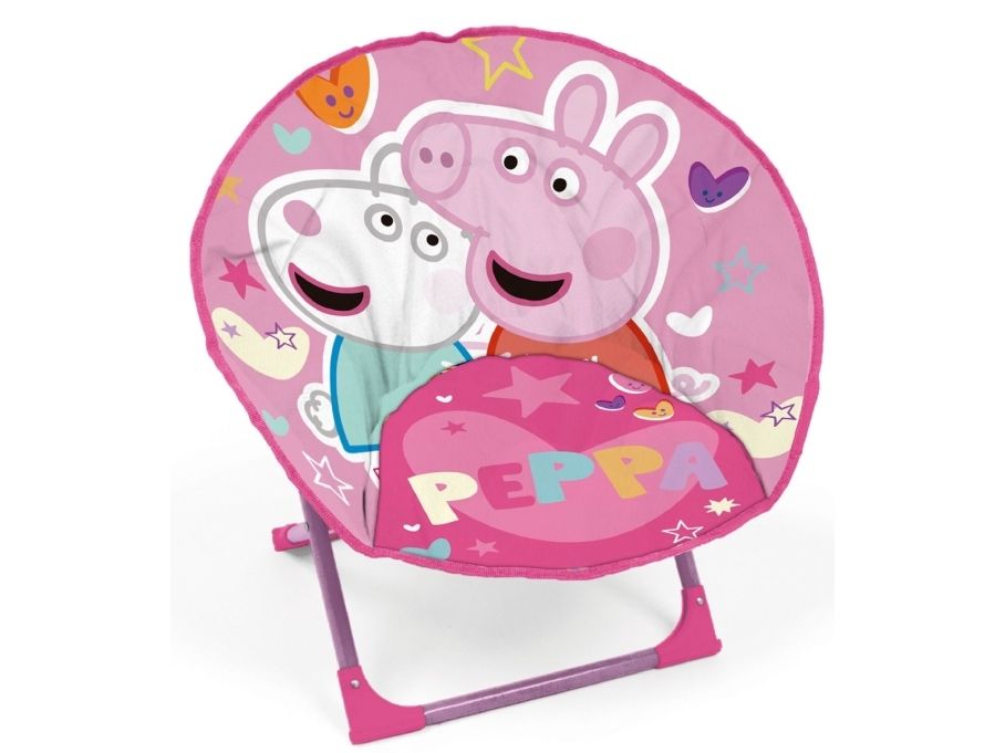 Stol med måneform. Metalstruktur med polyesterpolstret sæde. Indret dit værelse med dine yndlingsfigurer. Det optager lidt plads, det er foldbart, det dekorerer ethvert børns miljø, det er modstandsdygtigt og sikkert. Børn vil nyde at bruge det. Polstret sæde Betrækket er lavet af polyester med høj modstand og holdbarhed. Sikkerhedslås for at forhindre foldning under brug Sikker for børn Fra 36 måneder Maksimal vægt: 30 kg Størrelse: 50x50x50 cm