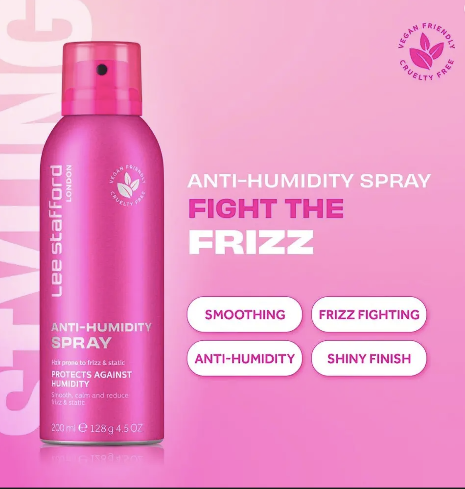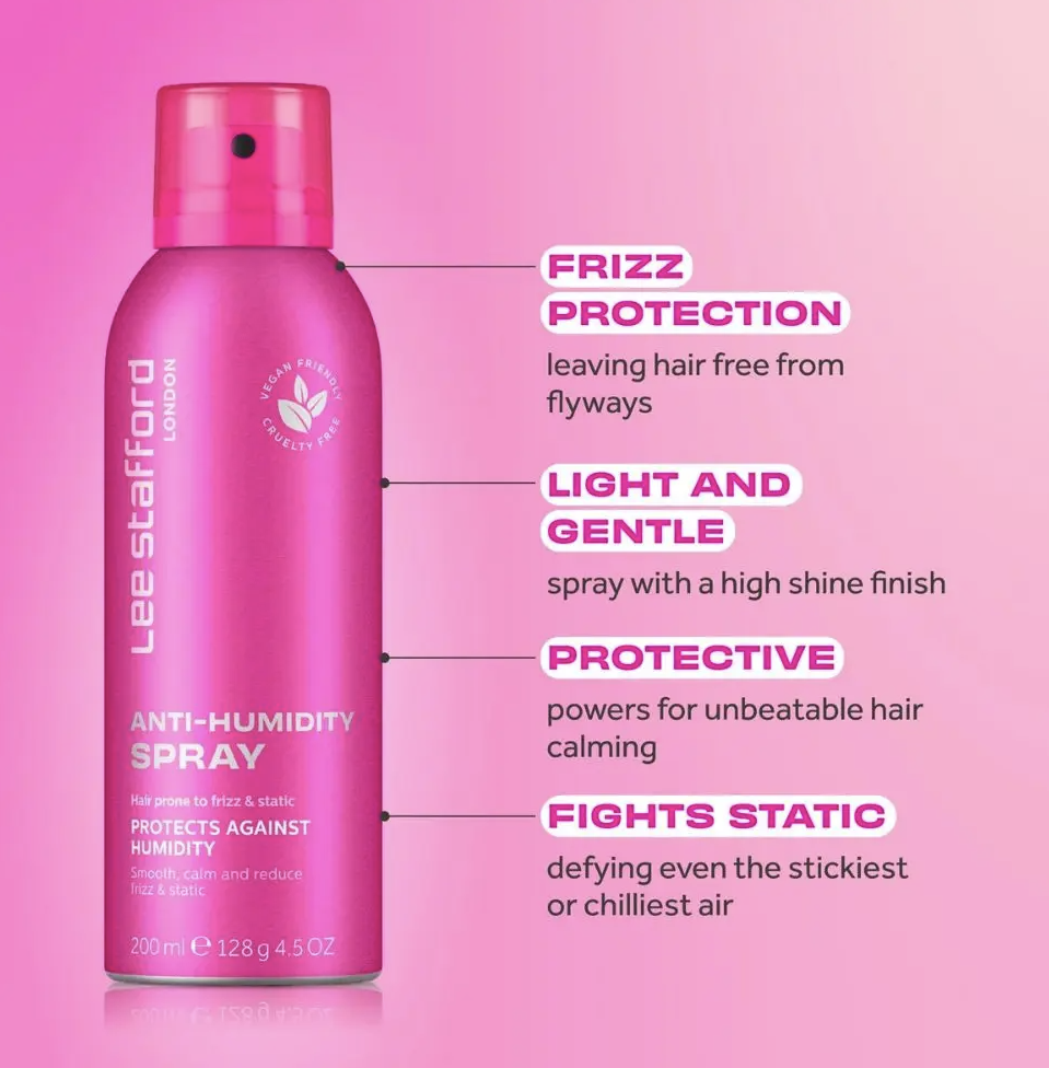 Som en flydende paraply til dit hår bekæmper Lee Stafford Anti-Humidity Spray krus hurtigt for at holde lokkerne glatte og bløde i fugtig luft. Designet til at være vægtløs på håret, så du ikke ser eller føler noget. Med en simpel spritz kan din stil trodse flyvsk og forblive glat fra dag til nat.