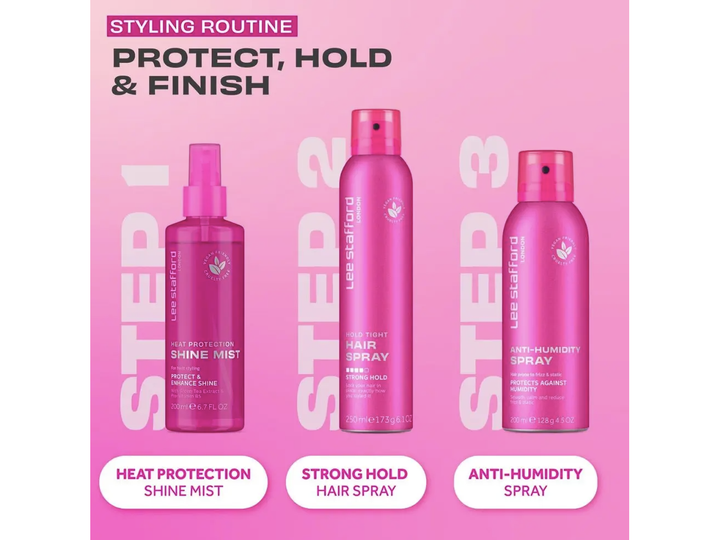Trin 3: For at låse din stil på plads kan du spritte dit færdige look med Lee Stafford Hold Tight Hairspray.