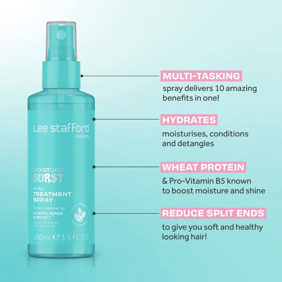 | OM MOISTURE BURST SERIEN Lee Stafford Moisture Burst Collection tilbyder en forfriskende dosis af fugt og pleje til tørt og dehydreret hår! Denne kollektion er specielt udviklet til hårstrå, der er blevet tørre og skrøbelige og er det perfekte valg for dehydreret hår, der har brug for ekstra omsorg. Den kraftfulde formel i serien er rig på veganske ingredienser som Cupuacu Seed Butter, Hvedeprotein og Pro-Vitamin B5, hvilket giver pleje og næring til tørt og skadet hår. Lee Staffords Moisture Burst er vores bedste serie til fugt og hydrering, der efterlader håret utroligt glat, blødt og sundt at se på. Find hele serien her. |