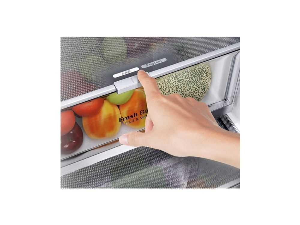 The LG GSGV81EPLL refrigerator/freezer combines an efficient design with a total net capacity of 635 liters, making it a choice for any kitchen. With a side-by-side configuration, it features a 416-liter refrigerator net capacity and a 219-liter freezer net capacity. The refrigerator boasts an automatic defrost feature and technologies such as Linear Cooling and Multi Air Flow ventilation, ensuring optimal temperature control and food preservation. The convenient InstaView window allows for visibility of stored items without opening the door, while the Door Cooling+ feature aids in maintaining a consistent cooling experience. The refrigerator also includes a SmartDiagnosis feature, Wi-Fi connectivity, and voice control for added convenience and compatibility with modern smart homes. This model is designed with energy efficiency in mind, consuming 350 kWh annually, and operates quietly at a noise level of 36 dB(A). The smart water and ice dispensers offer instant accessibility to drinks, and the SpacePlus ice maker produces both cubed and crushed ice. With features like 2 freezer drawers and 4 refrigerator shelves, organization is made easy, ensuring that everything has its place. Additional benefits include an energy class rating of Class E, compliance with EU standards, and a range of interior lighting that enhances visibility within the compartments.