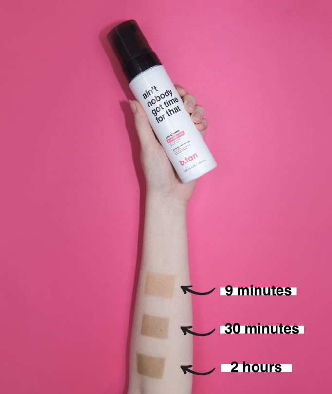 b.tan ‘ain’t nobody got time for that’ er verdens eneste selvbruner på bare 9 min, den er til dig der har fart på og ikke vil vente 1 time på at blive solbrun.
