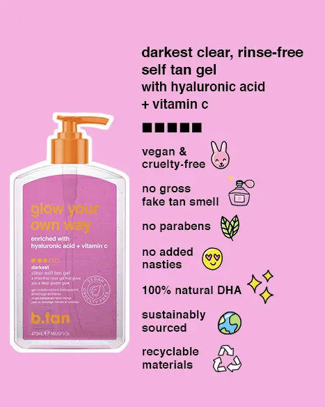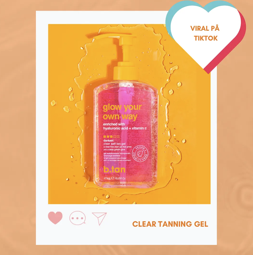 Byd velkommen til sommerens hotteste skønhedsprodukt! Produktet der har taget internettet med storm, produktet som ALLE! vil have deres fingre i! b.tan glow your own way er en gennemsigtig tanning gelé, perfekt til dig der ønsker et tanning produkt der virker!