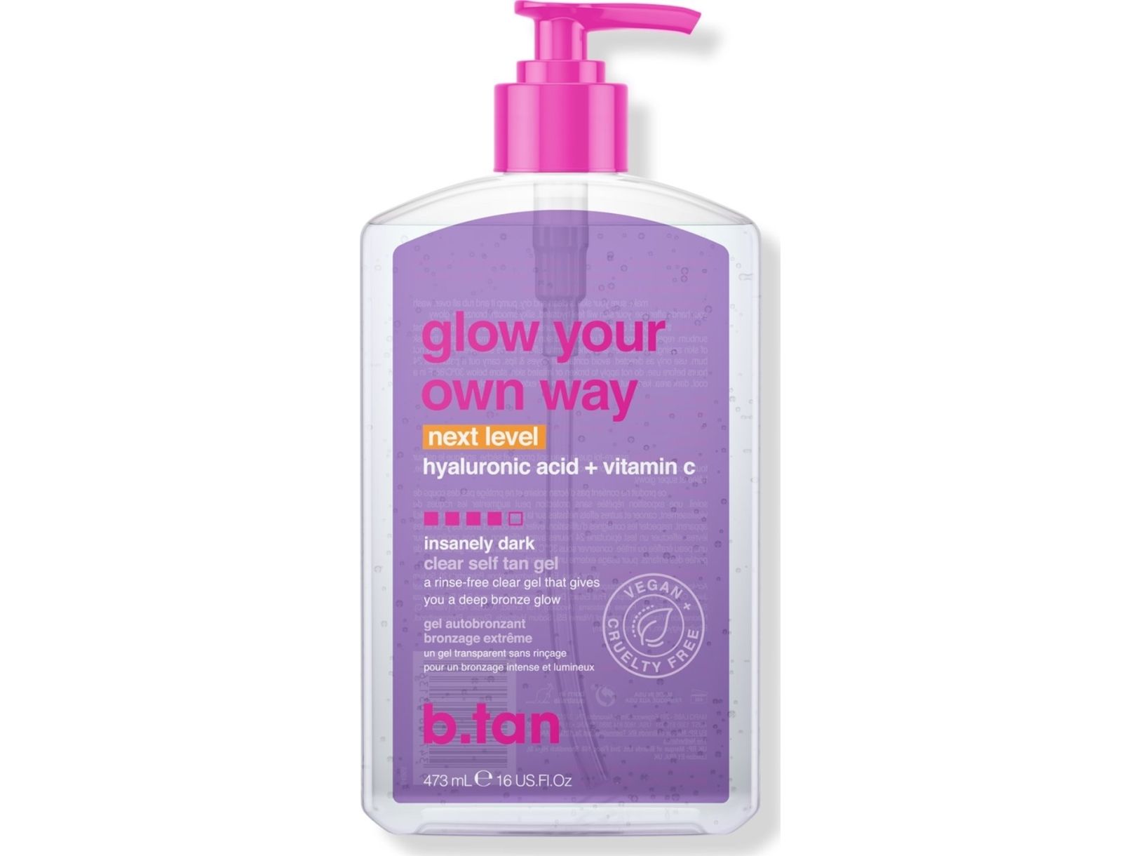 | b.tan Glow Your Own Way Clear Self Tan Gel Gir en vanvittig mørk glød til huden. Ideell for kropp og ben for en langvarig, solbrun glød – Fordeler * Selvbruningsgel som gir en naturlig og solkysset brunfarge uten sol * Raskt absorberende selvbruningsgel som ikke føles klissete på huden * Utvikler en jevn, stripefri og naturlig selvbruningsfarge * Fuktighetsgivende formel som bidrar til å holde huden myk og glatt * Kan bygges opp for en dypere og mørkere brunfarge * Passer for både nybegynnere og erfarne selvbrunere * Vegansk selvbruner og ikke testet på dyr * Stor størrelse 473 ml – perfekt for regelmessig bruk |
