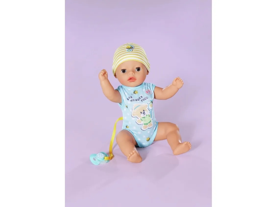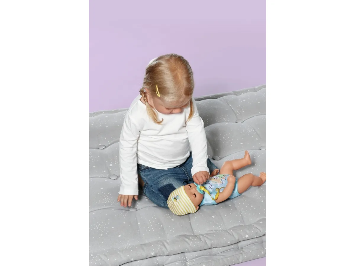 BABY born Little Baby Boy has 7 great functions that all work without batteries. He comes with everything he needs for this. He can drink water from his bottle, change his nappy or go on his blue potty. If you give him the dummy and turn it to the left, he closes his eyes; if you turn it to the right, he opens his eyes. If you put him to sleep in his cot, he closes his eyes even without a dummy. His arms, legs and head are super manoeuvrable and make dressing and undressing him child's play. At 36 cm, it is suitable for smaller children's hands from the age of one and is the perfect doll for starting out with varied baby play. They can even sit on the potty together and playfully help your child to get dry.BABY born Lukas (Little Baby Boy) 36cm. Doll type: Baby doll, Doll's gender: Male, Recommended age (min): 3 yr(s), Suggested gender: Boy/Girl. Height: 360 mm. Material: Plastic, Textile, Product colour: Multicolour