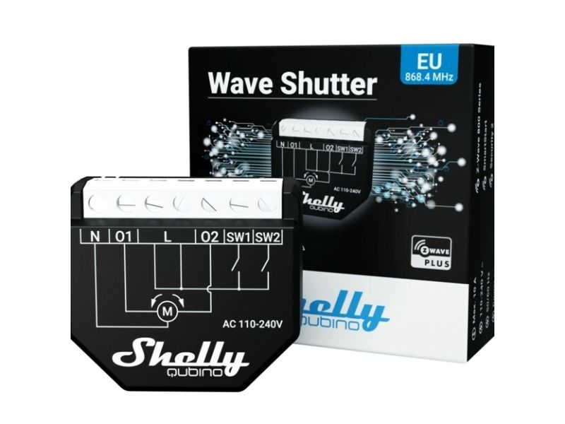 Shelly Qubino Wave Shutter enables remote control of motorized shades, rollers, blinds, windows, awnings, or any device powered by a bi-directional AC motor. It supports control over the tilt position of the venetian blind slats. You can control it either via your smartphone/tablet or according to schedules or scenes, while retaining the option for manual operation with a wall switch. Precise positioning is supported for motors equipped with mechanical or electronic end limit switches. Features: Control over the tilt position of the venetian blind slats. Supports push-buttons/momentary switches and toggle switches. Measures power consumption of the connected devices on each channel. Extended wireless range – up to 40 m indoors. Small size ensures the simplest installation behind every wall switch or wall socket. SmartStart for the automatic set-up. OTA Firmware update for over-the-air updates. Security Vault™ ensures the highest level of security with features, such as secure boot, secure key management, secure debug, and more. Security 2 Authenticated. Extremely low energy consumption: less than 0.3 W. Works with Z-Wave certified hubs and over 4000 Z-Wave devices.