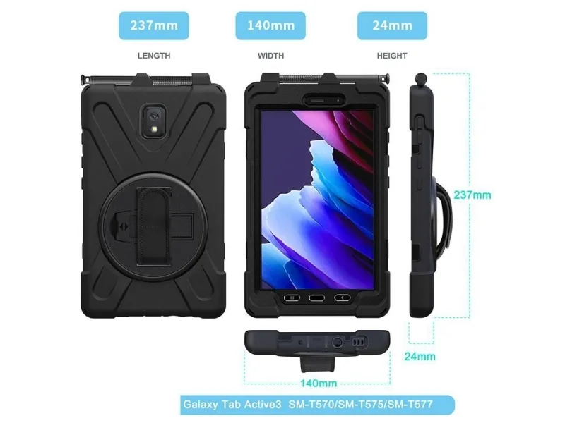 Shockproof cover designed for every day use. It is equipped with a pencil slot as well as a hand strap for a firm grip. Furthermore, it is delivered with a shoulder strap should you wish to carry the tablet in an easy way.
