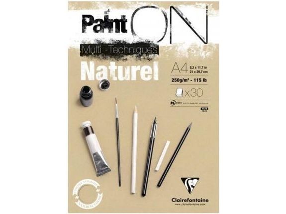 Paint-On Blok A4 250gram 30 arkbrunt/naturel papir, multi teknik, toplimet