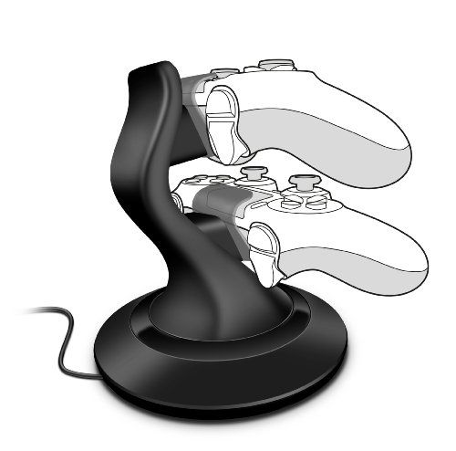 Charge your PS4 controllers quickly and reliably with the TWINDOCK charging system. Charge up to two controllers simultaneously and save the hassle of waiting. The proven, convenient docking system also holds your controllers securely in place – simply dock them and they'll start charging instantaneously. The rubberised feet prevent the charging system from sliding around, so it always stays rooted to the spot. What's more, besides the stylish design the TWINDOCK Charging System is highly durable as it’s designed for daily use. Thanks to its compact size and the practical arrangement of the charging slots, you can use the charging station wherever you want – plus, you'll always have your controllers and PS4 gamepads ready to hand and neatly arranged.