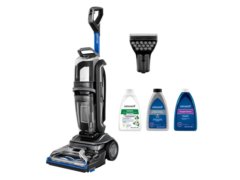 The BISSELL Revolution HydroSteam carpet cleaner delivers effective cleaning for various surfaces, ensuring a spotless home environment. With its upright design and advanced steam cleaning capabilities, this machine efficiently tackles dirt and stains on carpets, area rugs, and stairways. Utilizing HydroSteam technology, it combines wet and dry cleaning methods that adapt to different cleaning needs, while the two-tank system keeps clean and dirty water separate for optimal performance. The included tough stain tool and flexible hose aid in reaching challenging spots and provide a thorough clean in every corner of your home.