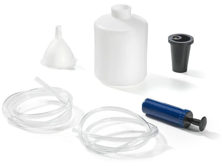 Olje- og bensinsugersett som egner seg til å suge opp oljer og drivstoff til alle 4-taktsmotorer. Perfekt sett for å gjøre gressklipperen klar til vårens første klipping.