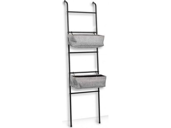 Zeller Hyllestige med 2 kurver, metall, svart-grå, 43x23x166 cm