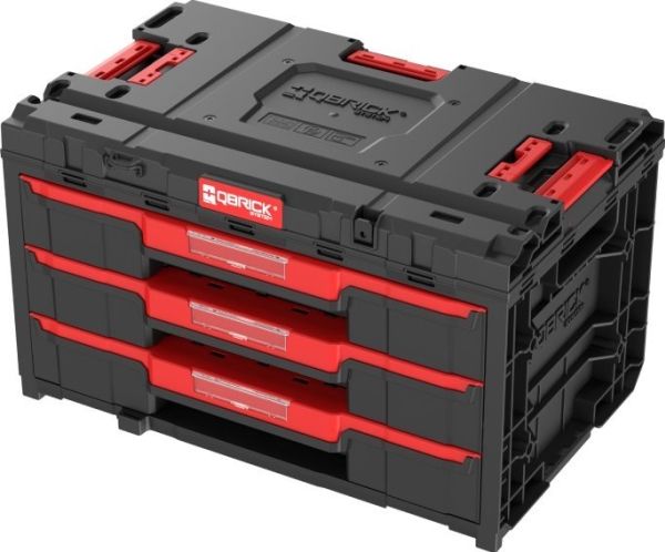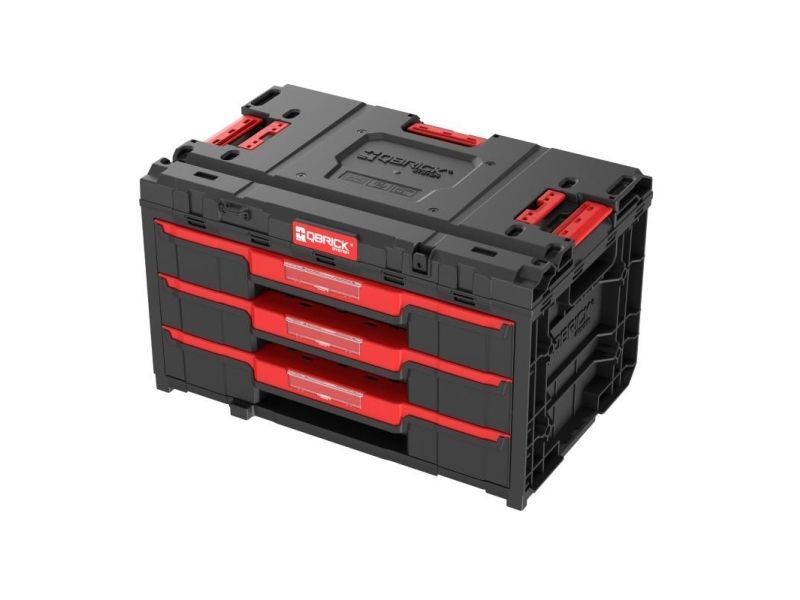 3 drawers with internal dimensions: 467 x 286 x 68 mm; automatic locking system; metal drawer rails; drawer bpodies made of ABS; durable polyamide connectors; possibility of combining with QS PRO modules; adjustable ABS dividers; solid metal anti-theft bolt; place to describe the contents; possibility of hanging drawers on the wall;