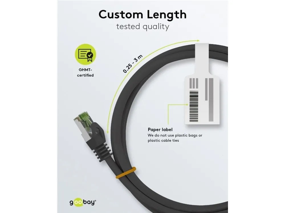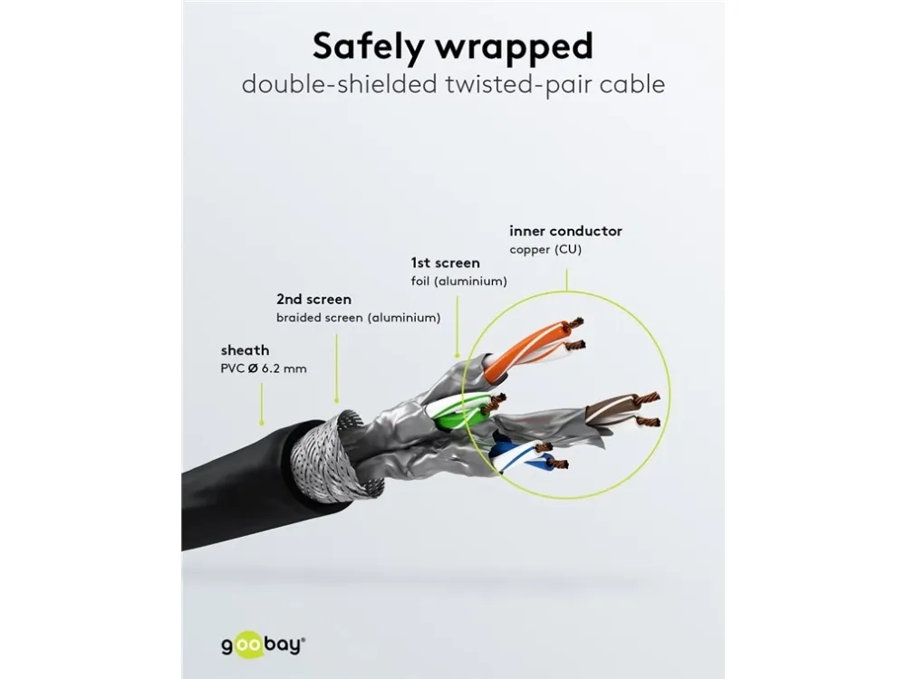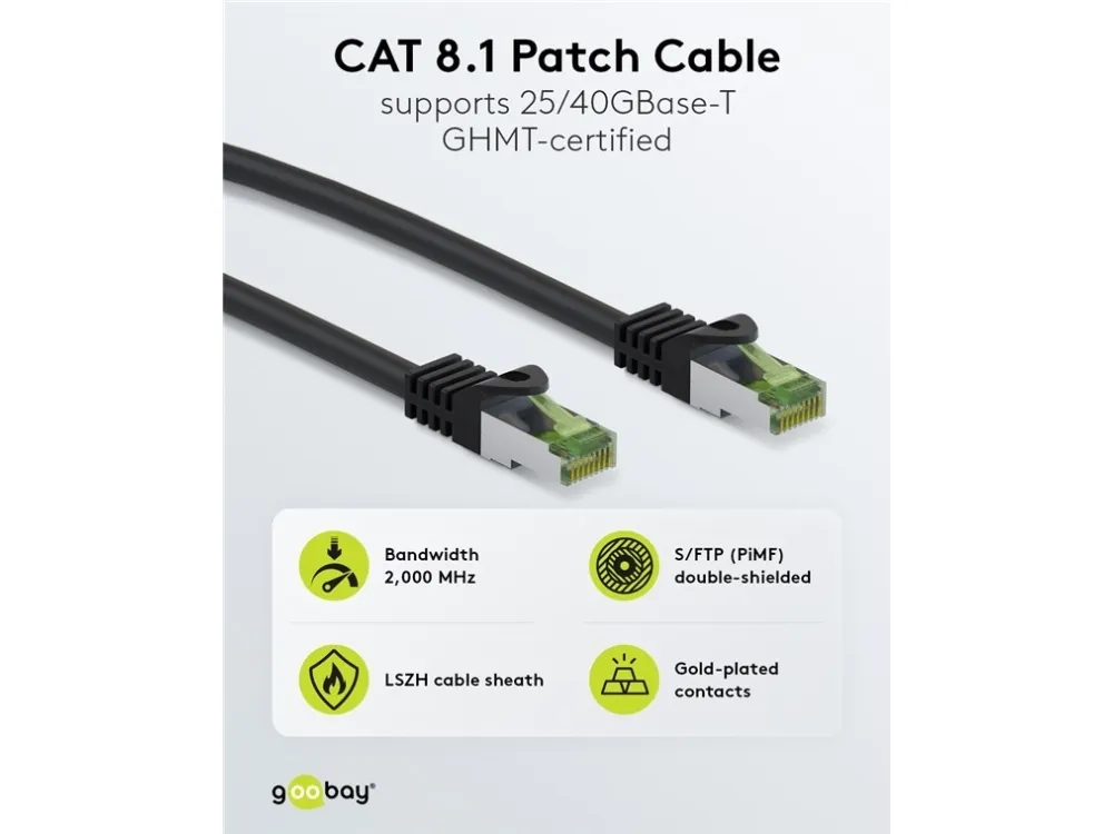 Goobay 69791, 2 m, Cat8.1, S/FTP (S-STP), RJ-45, RJ-45, Sort