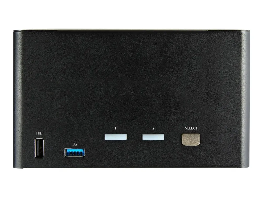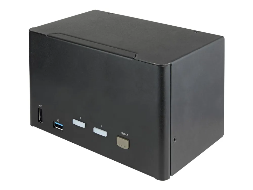 This 2-port KVM switch combines 4K (60 Hz) digital display capabilities with control of two connected computers.