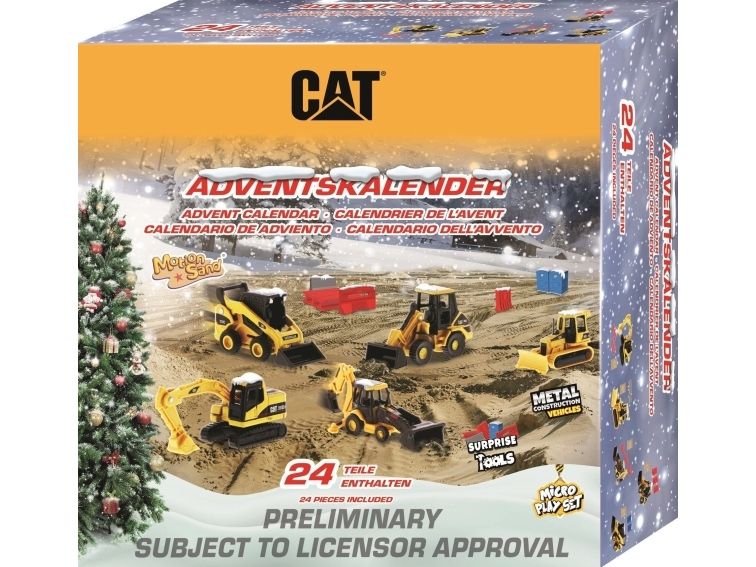 Forventningens glæde ved byggepladser-fans giver netop børn store udfordringer. Med Cat mikro julekalenderen går tiden hurtigt og hver dag til et højdepunkt, da denne kalender indeholder alle byggepladskøretøjer, der sørger for lysende øjne for de små og store fans. Fem forskellige byggepladskøretøjer i et kendt Cat-design med en længde på 4,9 til 6,6 cm er adskalenderens højdepunkt. For at det ikke skal blive kedeligt mellem forskellige steder, medfølger der en masse tilbehør til at spille eller designe sin egen byggeplads derhjemme: Tilbehør og skilte, Cat mærkat Cat mærkat, nøglering og den kendte Motion sand, som ikke klæber på hænderne, sørger for legeglæde.