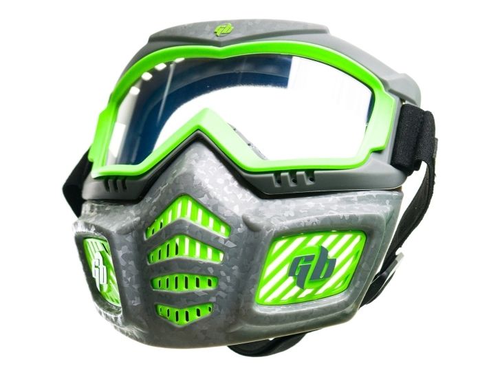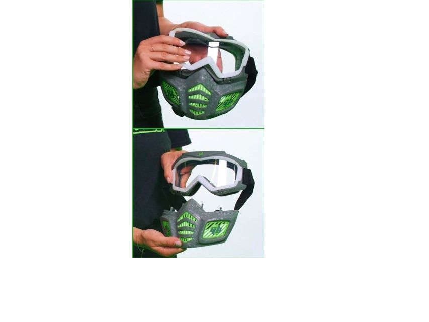 | Bruk den med den nedre delen eller bare som vernebriller. Masken er både pustende og justerbar. |