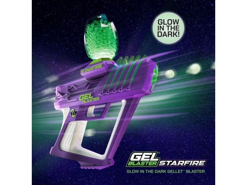 Når Gel Blaster® legen fortsætter til ud på aftenen, behøver du ikke mere stoppe! Fyld din beholder op med Starfire Gellets® og den indbyggede LED activator vil omgående lade dem op til et funklende lysshow.