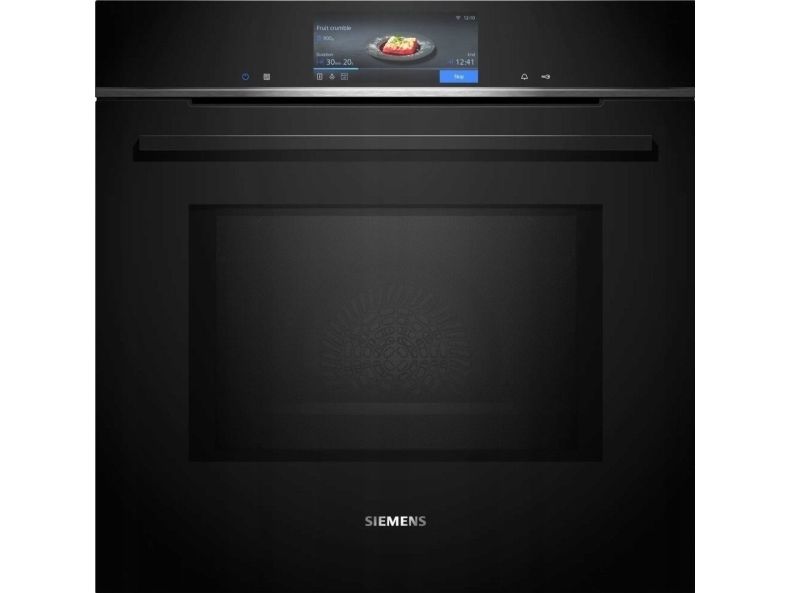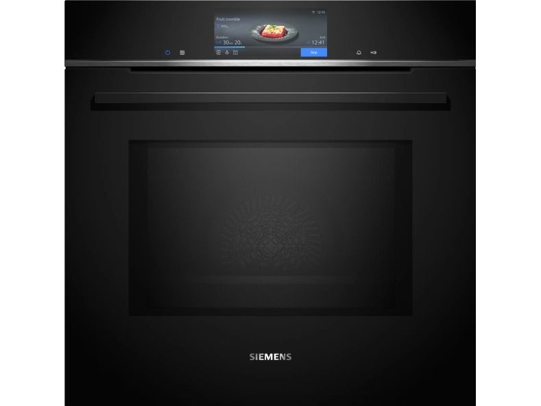 Siemens iQ700 HM778GMB1. Oven size: Medium, Oven type: Electric, Total oven(s) interior capacity: 67 L. Appliance placement: Built-in, Product colour: Black, Control type: Touch. Clock type: Electronic, Apps supported: Home Connect. Connected load: 3600 W, AC input voltage: 220 - 240 V, AC input frequency: 50/60 Hz. Lamps quantity: 1 lamp(s), Lamp type: LED