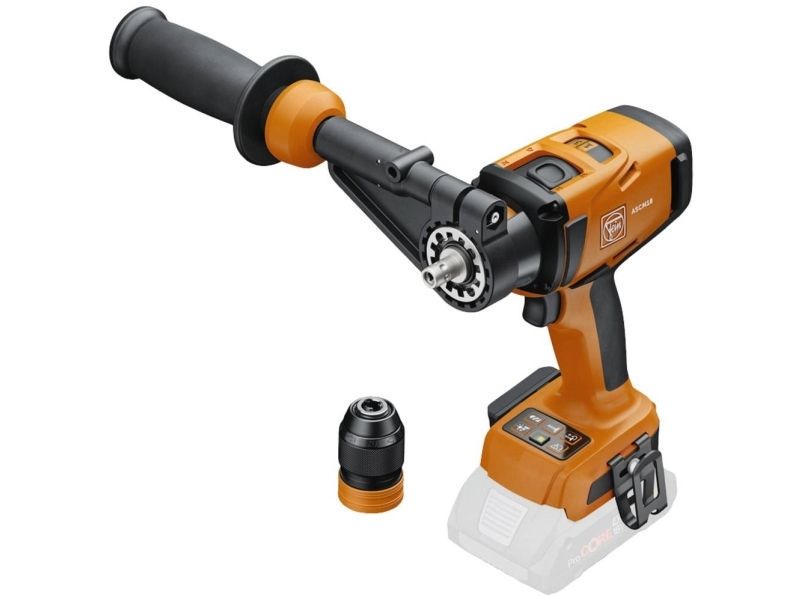 Batteri-slagboremaskine GSB ASCM18-4QMP 4-trins batteridrevet slagboremaskine ASCM 18-4 QMP AS Med børsteløs motor og QuickIN interface Kompromisløs ydeevne til gevindboring op til M14 og boring med HM-hulsav op til 80 mm 4-trins helmetal-gear. Med omdrejningshastigheder på op til 4000 omdr./min. for optimale fræsehastigheder i metal til hver boring fra 1,5 til 80 mm. De største anvendelsesmuligheder med FEIN QuickIN-system til multifunktionel anvendelse til boring, kernebor, gevindboring, sænkning og skruer. Meget sikkert arbejde. Tilbageslagsovervågning (kickback) stopper maskinen. Lynhurtig udskiftning uden værktøj af QuickIN forsatser mellem programmer i metal og træ med kun én maskine. Aktiverbart slagværk til boring i sten og murværk op til 13 mm. Mere kontrol takket være udtrækkeligt ekstra greb. Den børsteløse, kraftige FEIN Powerdrive motor, med en op til 30% højere virkningsgrad, muliggør en længere levetid. Høje drejningsmomenter op til maks. 130 Nm. QuickIn helmetal borepatron (120 Nm) med spændekæber udstyret med hårdmetal og høje spændekræfter. Elektronisk drejemomentindstilling (15+1). Intuitivt betjeningspanel med dæmpbar LED til perfekt oplysning af arbejdsstedet alt efter materiale. Ergonomisk og fleksibel håndtering med bit- og bælteholder placeret på siden. Skrues på 10 x 400 mm skruer uden forboring. AMPShare interface muliggør 1 400 forskruninger (5 x 40 mm i træ) pr. batteriopladning (ProCORE 4 Ah). Omfattende brugerbeskyttelse med sikring mod genstart, elektronisk overbelastningsbeskyttelse og bremse. Den innovative ekstrafunktion gør det muligt at skrue i træ med reduceret hastighed, hvilket giver perfekte resultater. Kompatibel med Bosch Professional 18 V-batterier siden 2008 og AMPShare batterier. Maksimal arbejdsgang med AMPShare 18 V ProCORE-batterier: COOLPACK 2.0-teknologi sørger for en 135% længere batterilevetid. Den mest moderne celleteknologi og intelligent batterimanagement sørger for 87 % mere ydeevne end ved almindelige batterier. Electronic Cell Protection (ECP) beskytter batteriet mod overbelastning, overophedning og dybafladning Perfekt valg til enhver anvendelse Mobile arbejdsgange med L-BOXX System