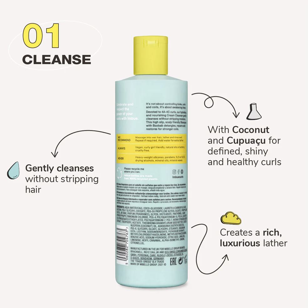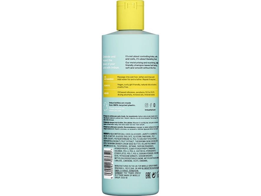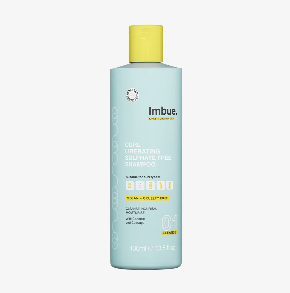 Imbue – Curl Liberating Sulphate Free Shampoo (400ml) Er en sulfatfri, fugtgivende og krøllefremmende formel designet til skånsomt at fjerne produktrester, snavs og skidt uden at udtørre krøllerne. Skabt til alle typer krøller og spoler, leverer shampooen en skånsom, men effektiv rensning, der efterlader håret blødt, blankt og skinnende. Den hjælper også med at adskille dine krøller, hvilket giver dem ekstra definition fra vaskedag og fremefter.