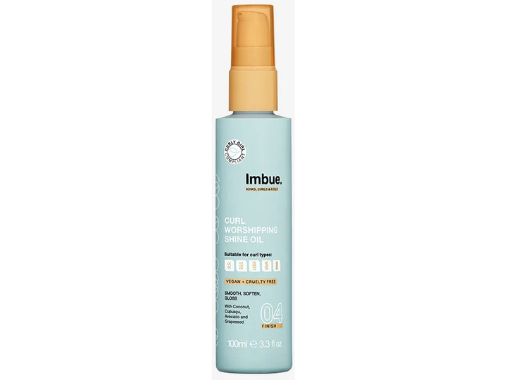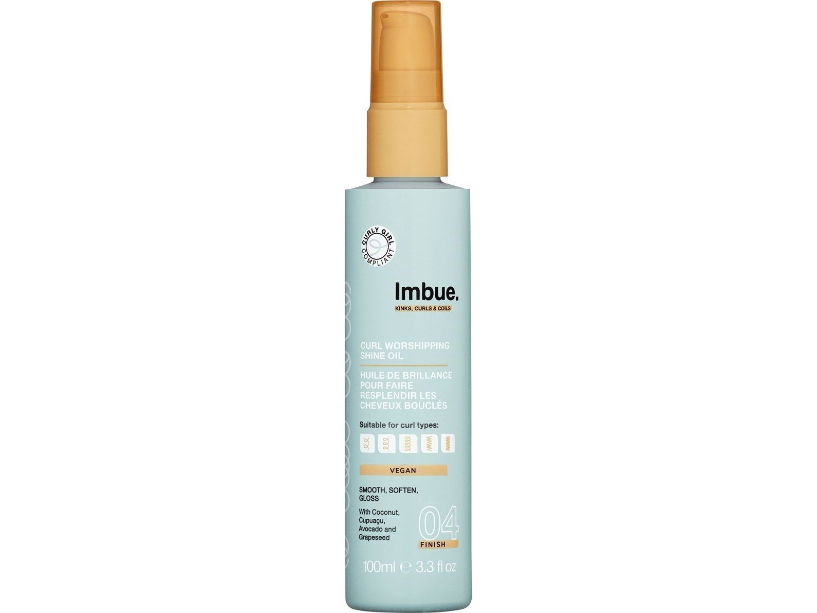 Når dit hår er tørt, og du har et "cast" fra dine stylingprodukter, tag nogle få dråber af Curl Worshiping Shine Oil på hænderne.