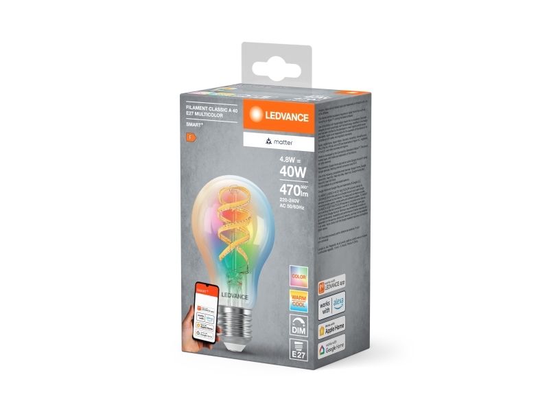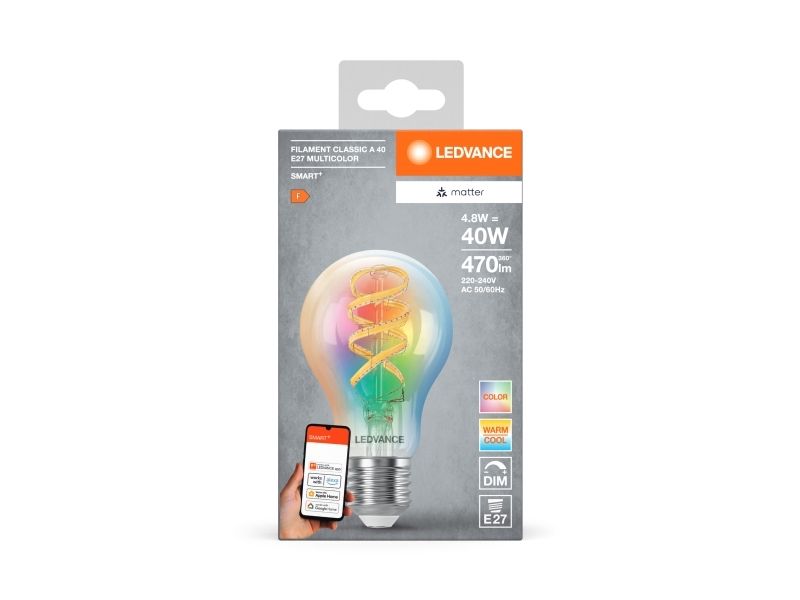 LEDVANCE SMART+ MATTER Filament Multicolor Classic A40 4.8W - E27 Smart pære
