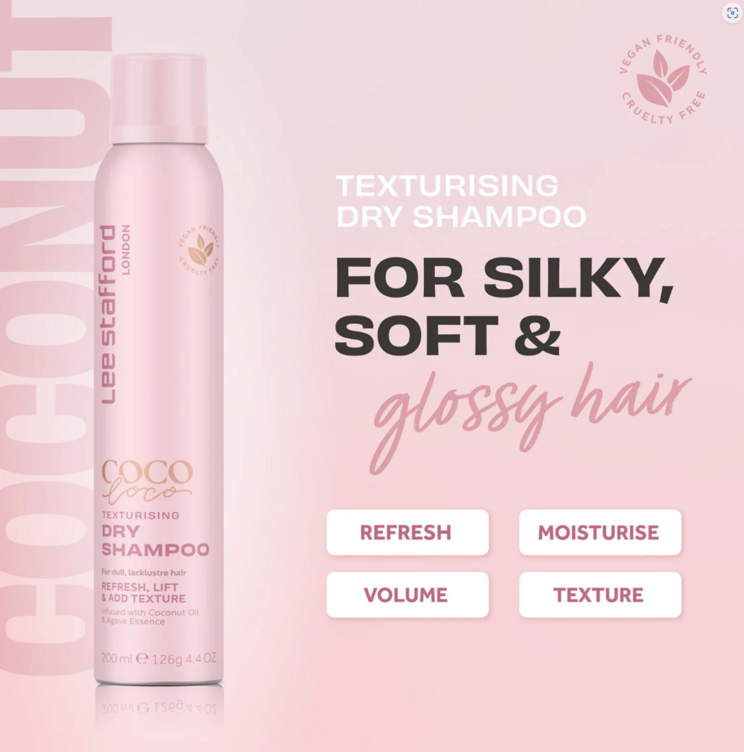Vi elsker tørshampoo på Lee Stafford HQ. Vi kan ikke leve uden. Vi ved alle, at nogle gange er der bare ikke nok timer i døgnet til at passe ind i en hårvask og føntørring. Vores Lee Stafford Coco Loco Texturising Dry Shampoo er hurtig og nem at påføre, den er hårdtarbejdende og hurtigt arbejdende og opfrisker håret øjeblikkeligt. Så simpelt er det.