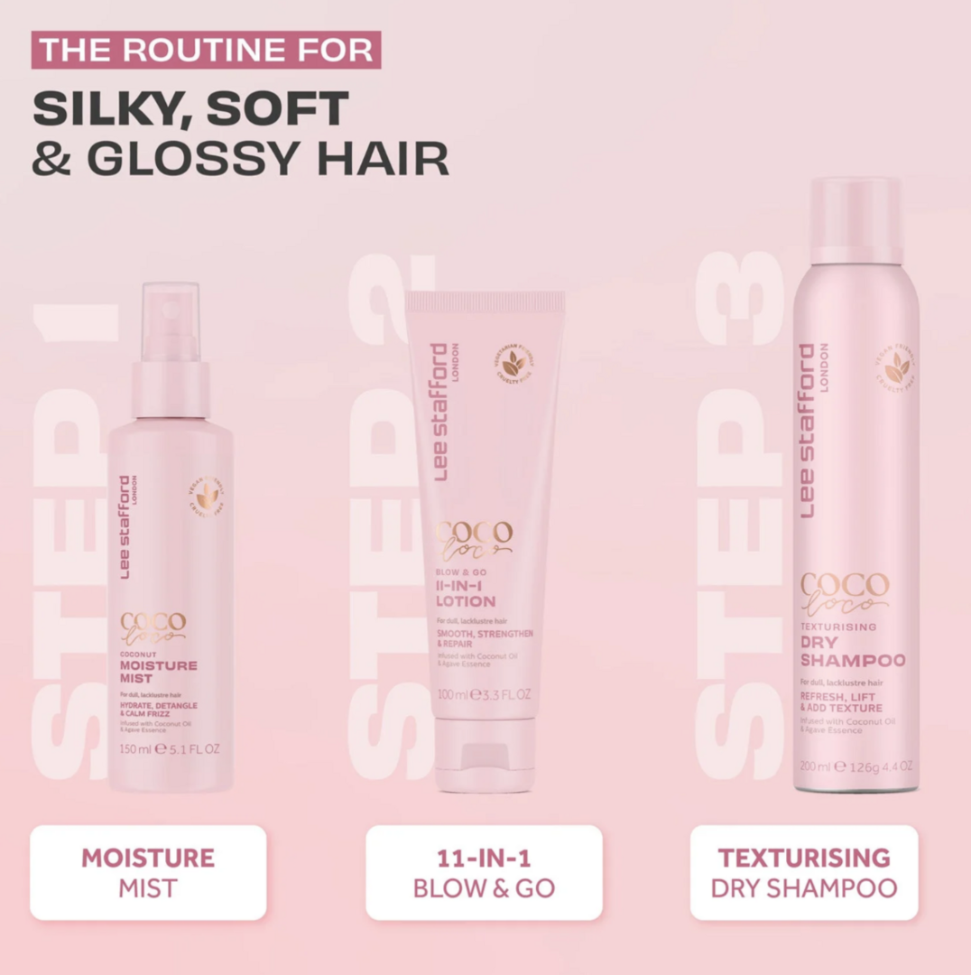 Oplev Lee Stafford Coco Loco tørshampoo; et ultraabsorberende pulver, der lugter af kokosnødder, designet til at forvise fedtede rødder og tilføje tekstur og løft.