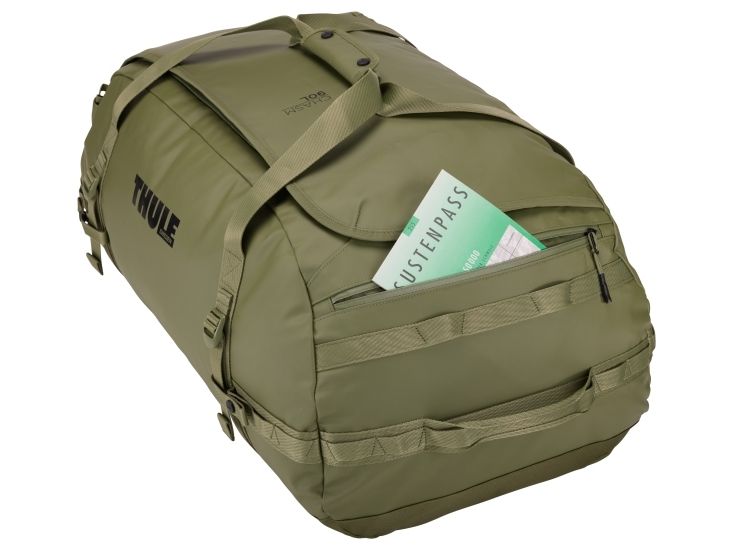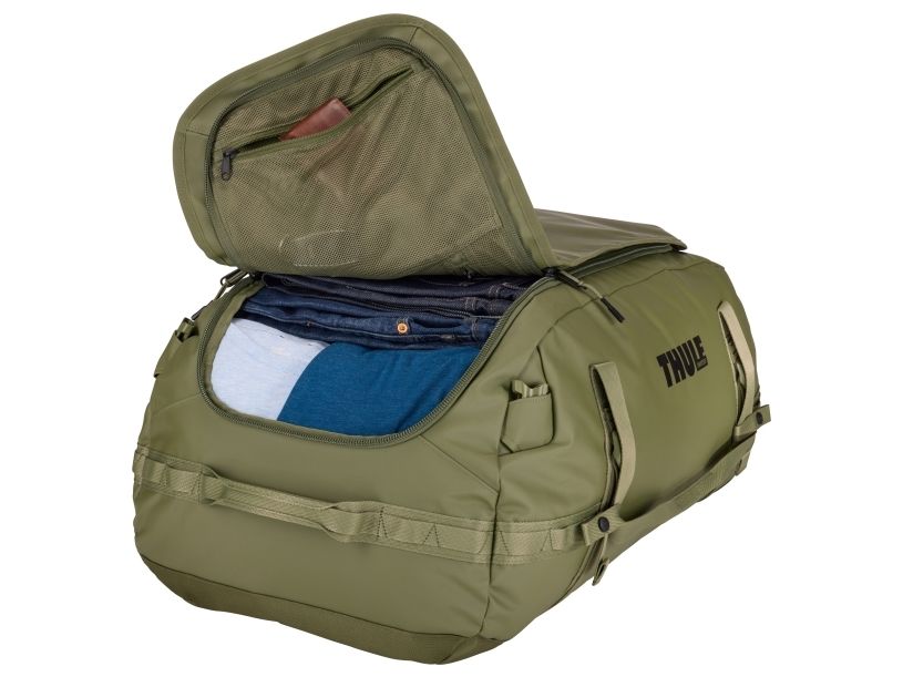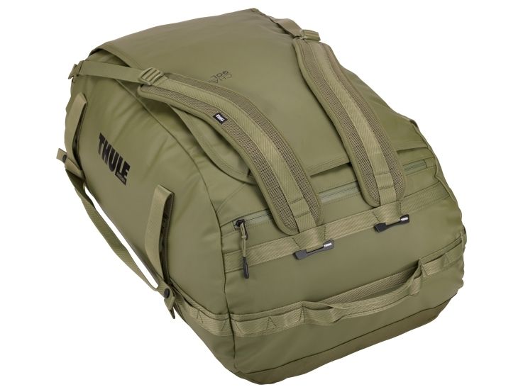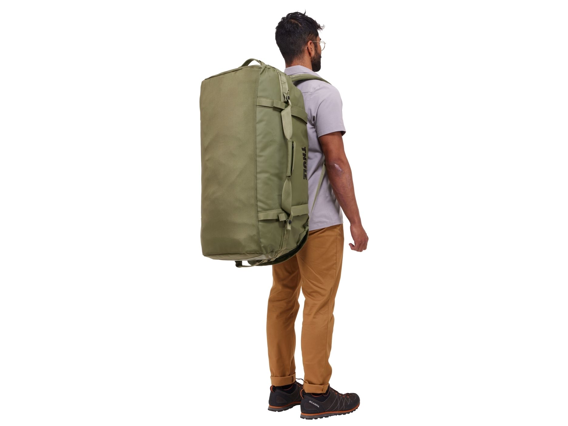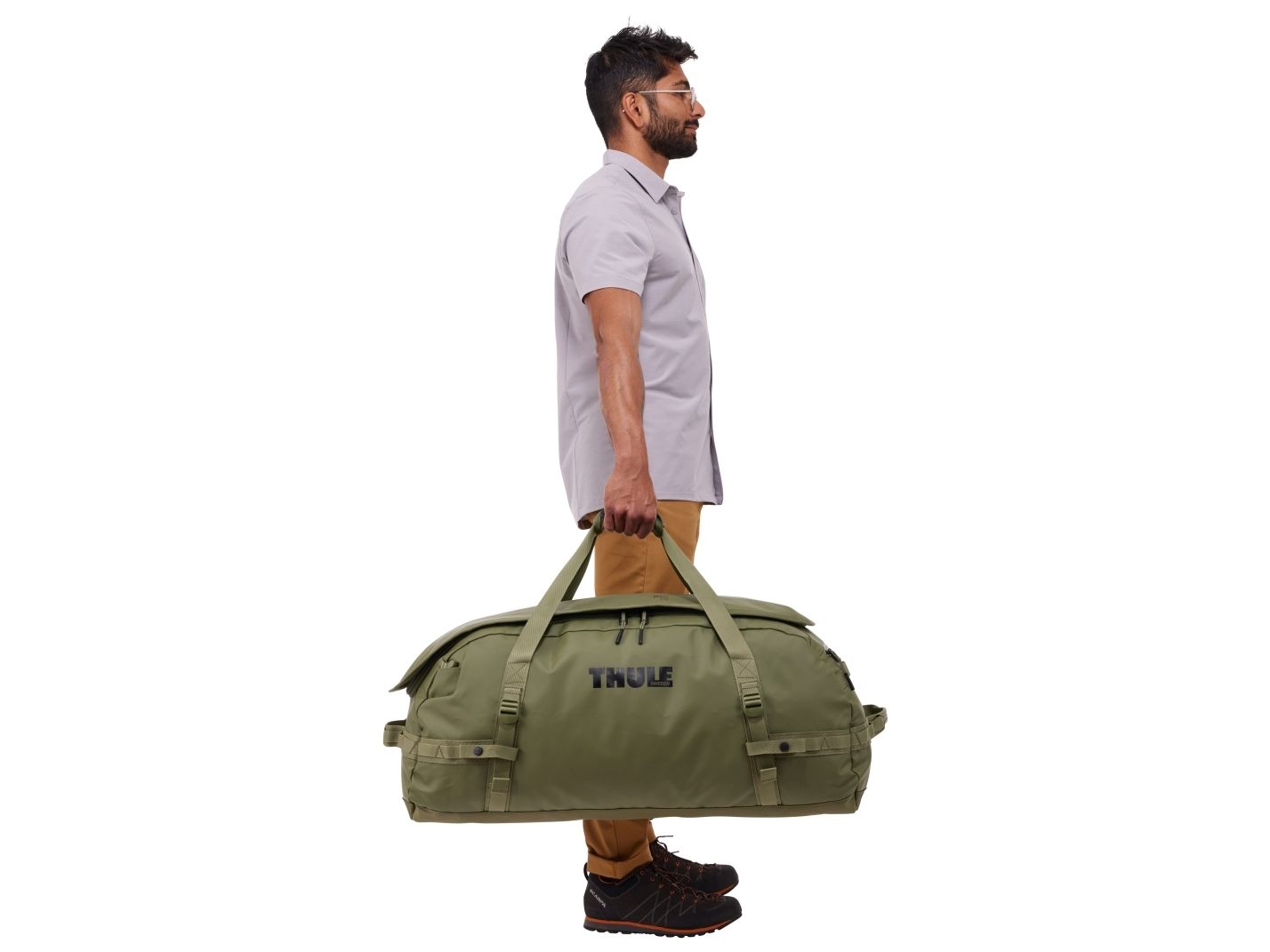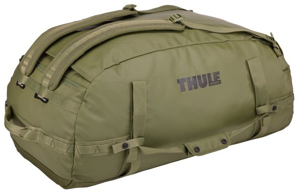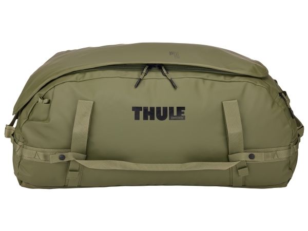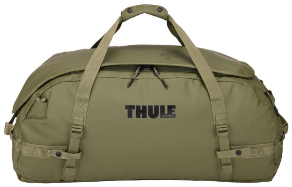 Thule Chasm Duffel 90L. Olivine . Rejsetaske Dimensioner: 74 x 42 x 33.5 cm Vægt: 2.1kg Volume: 90L Thule Chasm er en hårdfør og parat duffeltaske, der kan kastes ind i dit bagagerum eller din tagboks, perfekt til kortere ture eller mange dages oplevelser.